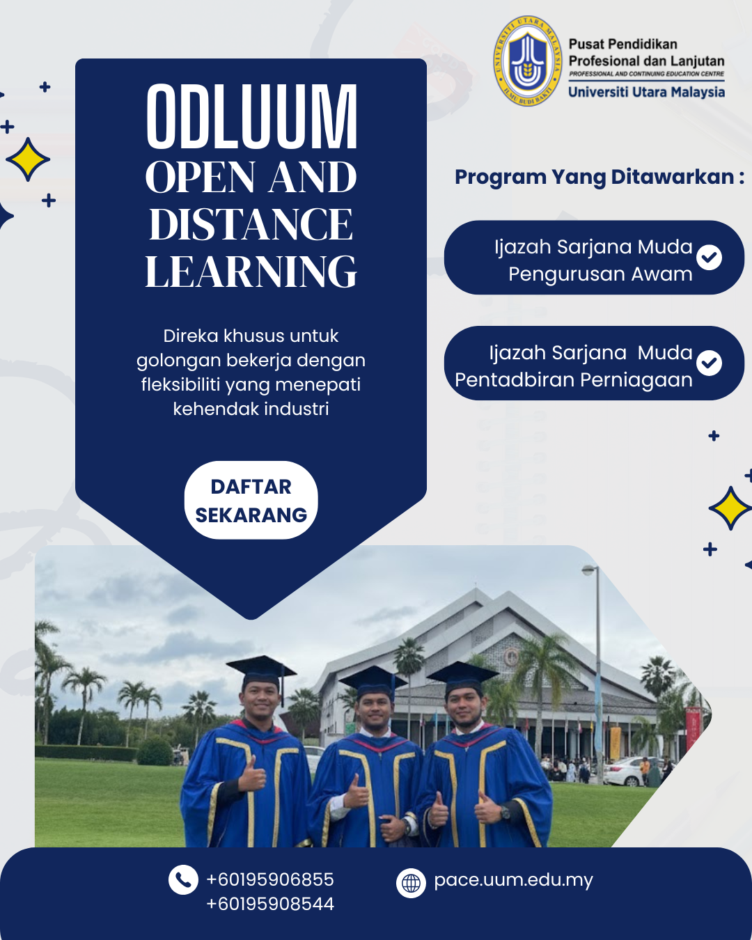 We are education agents and manage subsidary agents. It supports local and international students to continue their studies at Universiti Utara Malaysia (UUM). Students are guided from registration until completion of their studies